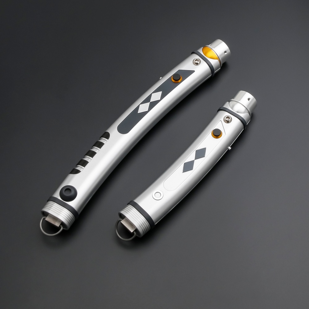 Licht und Schatten: Dieser Saber ist eine hochwertige Interpretation im Stil der Schwerter von Ahsoka Tano aus ihrer eigenen TV-Serie. Bitte beachte, dass es sich um eine design-optimierte Variante von TXQ und kein 1:1-Lizenzreplika handelt. Die elegant geschwungenen Griffe mit ihren charakteristischen flachen Profilen bieten eine außergewöhnliche Ergonomie für den für sie typischen Reverse-Grip-Kampfstil. Das Set besticht durch die Kombination aus dem längeren Hauptschwert und dem kürzeren Shoto-Saber, was eine unvergleichliche Agilität im Duell ermöglicht.